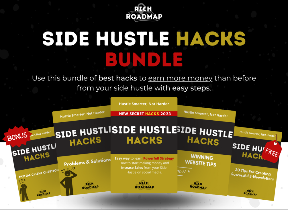 Side Hustle Hacks Bundle - Get complete e-book with so many bonuses and make 5x more MONEY from your side hustle on social media with the best strategy.